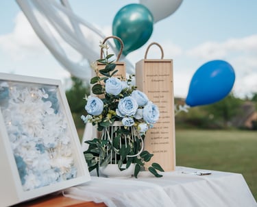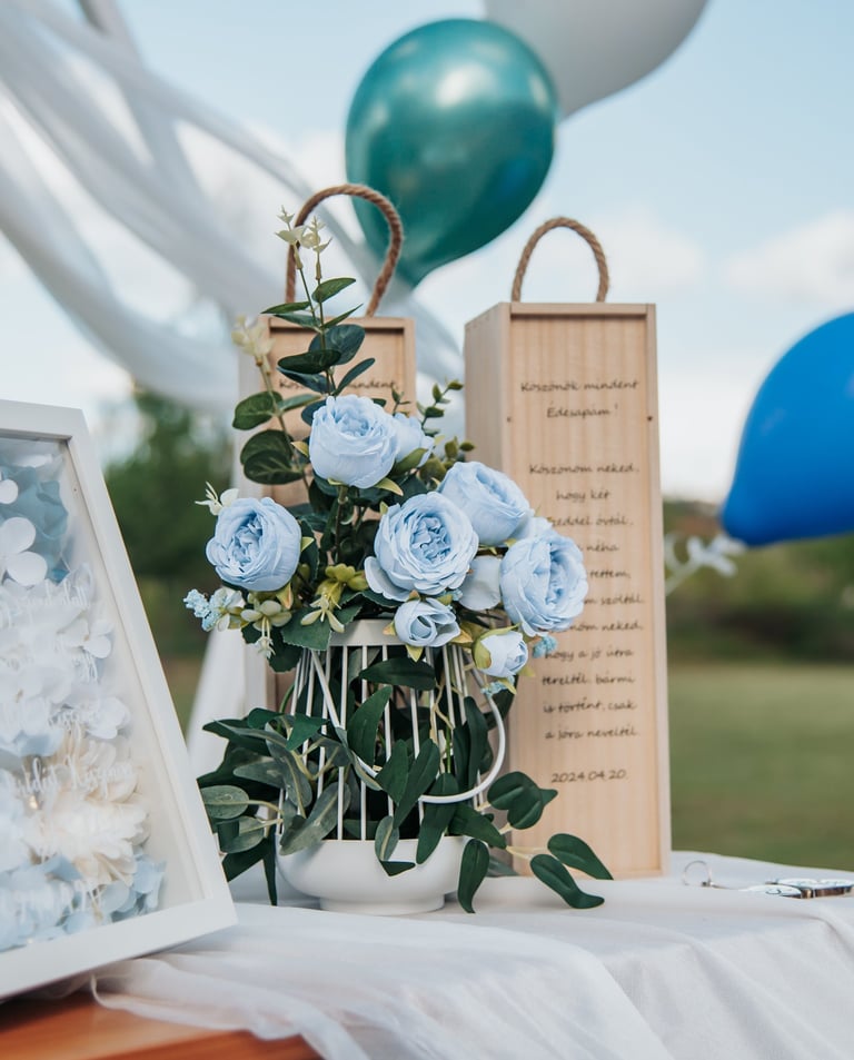 Amikor az esküvőtök egyedi dizájnkoncepciója elkészült, elkészítjük az összes dekorációs elemet és kiegészítőt.