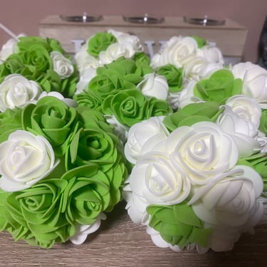 Méretben és színben választható habrózsagömbök, függeszthető vagy asztaldekorációként is használható
